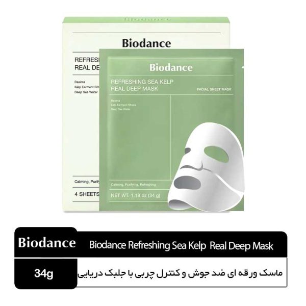 ماسک ورقه ای ضد جوش و کنترل چربی با جلبک دریایی بایودنس Biodance Refreshing Sea Kelp Real Deep Mask