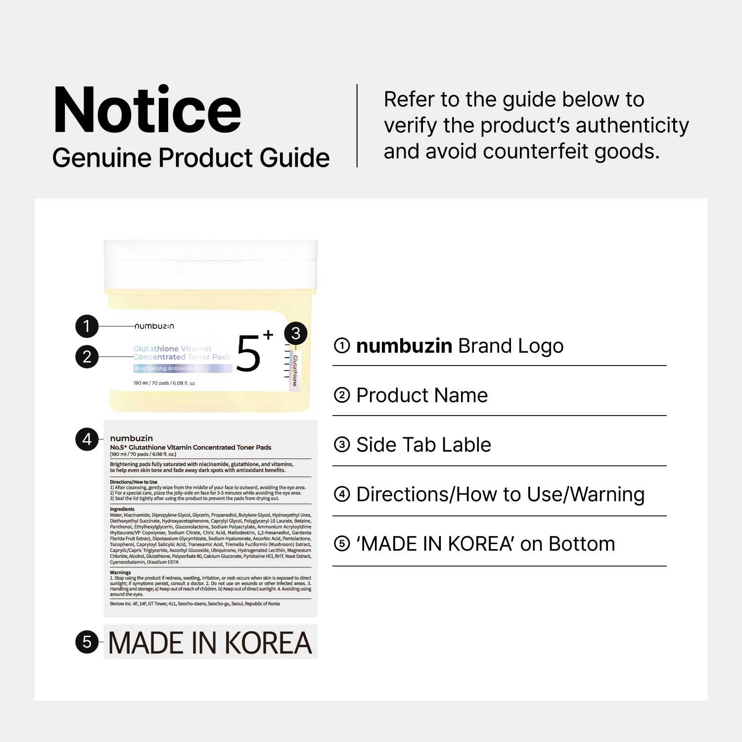 پدهای تونر ویتامین-نیاسینامید نامبوزین numbuzin No.5 Toner Pads | Vitamin-Niacinamide Concentrated Pad
