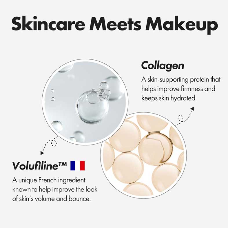این کرم پودر از بافت کرمی مرطوب‌کننده به یک پوشش صاف و طبیعی تبدیل می‌شود و رنگ پوست شما را یکنواخت و شفاف می‌کند.  همچنین فرمول این محصول با ترکیبات حرفه‌ای مانند کلاژن فرانسوی، Volufiline™ و عصاره گیاهان صحرایی و گل‌ها  تهسه شده و پوست را تا ۵۰ ساعت مرطوب و نرم نگه می‌دارد و به رفع خطوط ریز و افزایش خاصیت کشسانی پوست کمک می‌کند . از ترکیبات موثر این کرم پودر میتوان به موارد زیر توجه نمود.